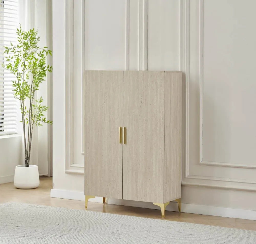 Meuble à chaussures en bois effet travertin avec 2 portes